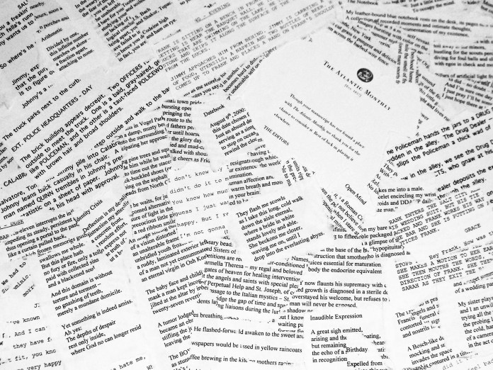 I had salvaged something of merit from my piles of rejected manuscripts. Through collage, I allowed the writing to live in another form, as the manuscripts now had value in the appearance of the words, instead of in the quality of the content.
