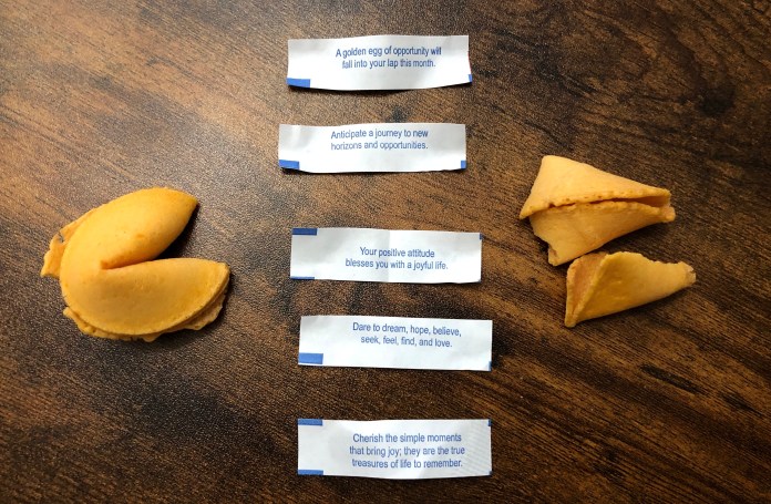 My wife bought a bag of fortune cookies at the Asian Food Market in Syracuse. So lately I’ve been grabbing the cookies and cracking them open to reveal what wisdom the universe is sending my way. But this feels like cheating—like you should only be granted one fortune cookie with a single order of Chinese food (maybe once a month).