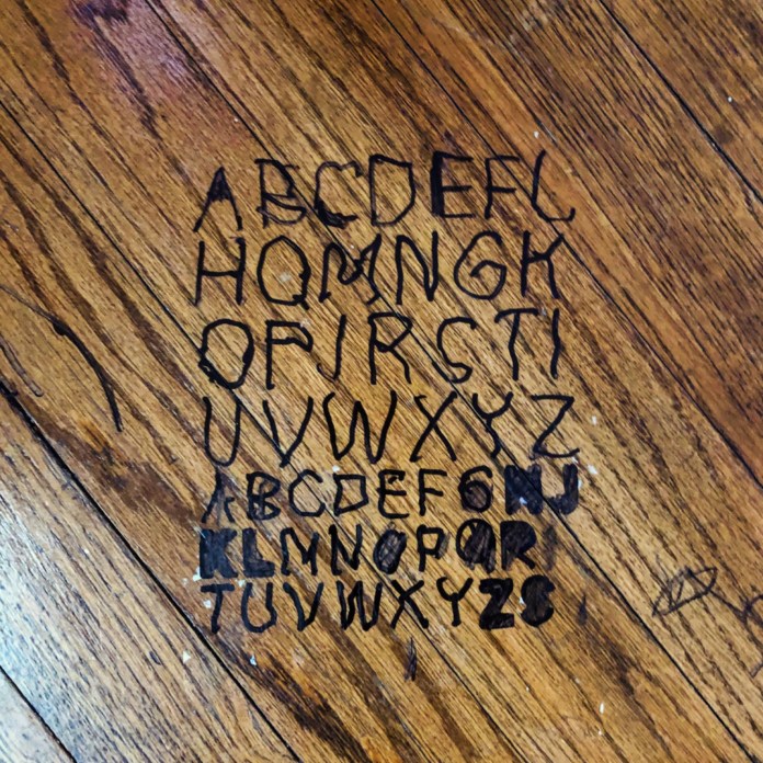 Colin drew with a Sharpie on the living room floor.