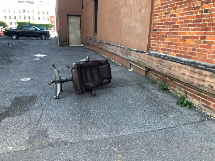Chair tipped over. Photo by Francis DiClemente.