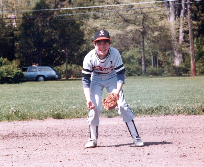 Playing third base in youth league baseball in Rome, New York, in the late 1970s.