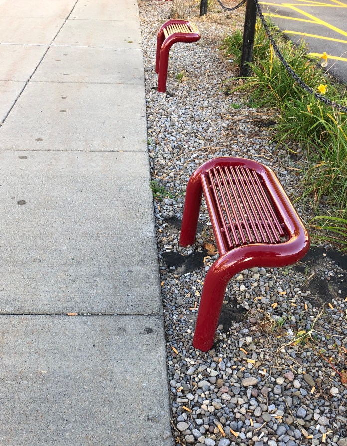 While walking home along East Genesee Street in Syracuse, I encounter a man seated a bus stop located between Phoebe’s restaurant and South Crouse Avenue.